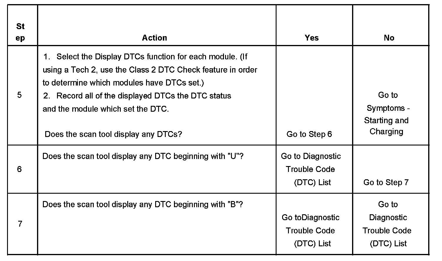 6. The presence of DTCs which begin with "U" indicate some other module is not communicating. The specified procedure will compile all the available information before tests are performed.