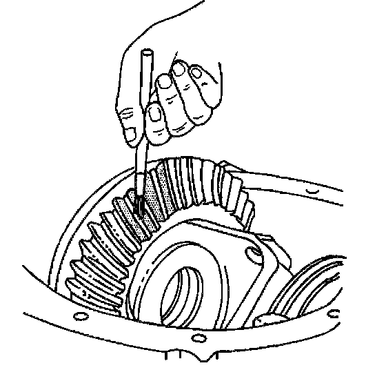 1. Wipe clean the differential case, the ring gear and the differential carrier housing of lubricant. Carefully clean each tooth of the ring gear.