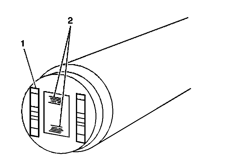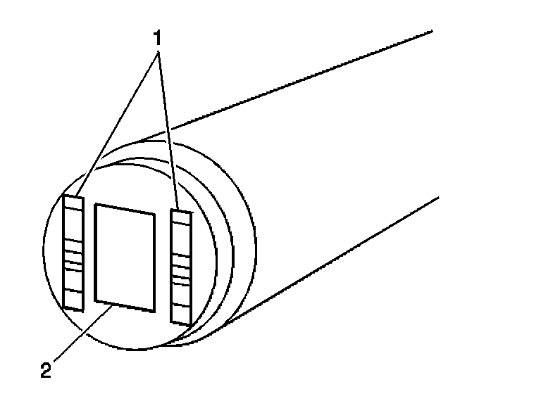 13. Normal CKP sensor wear will be shown on the wear strips (1) and no wear will be shown on the sensor sensing element (2).