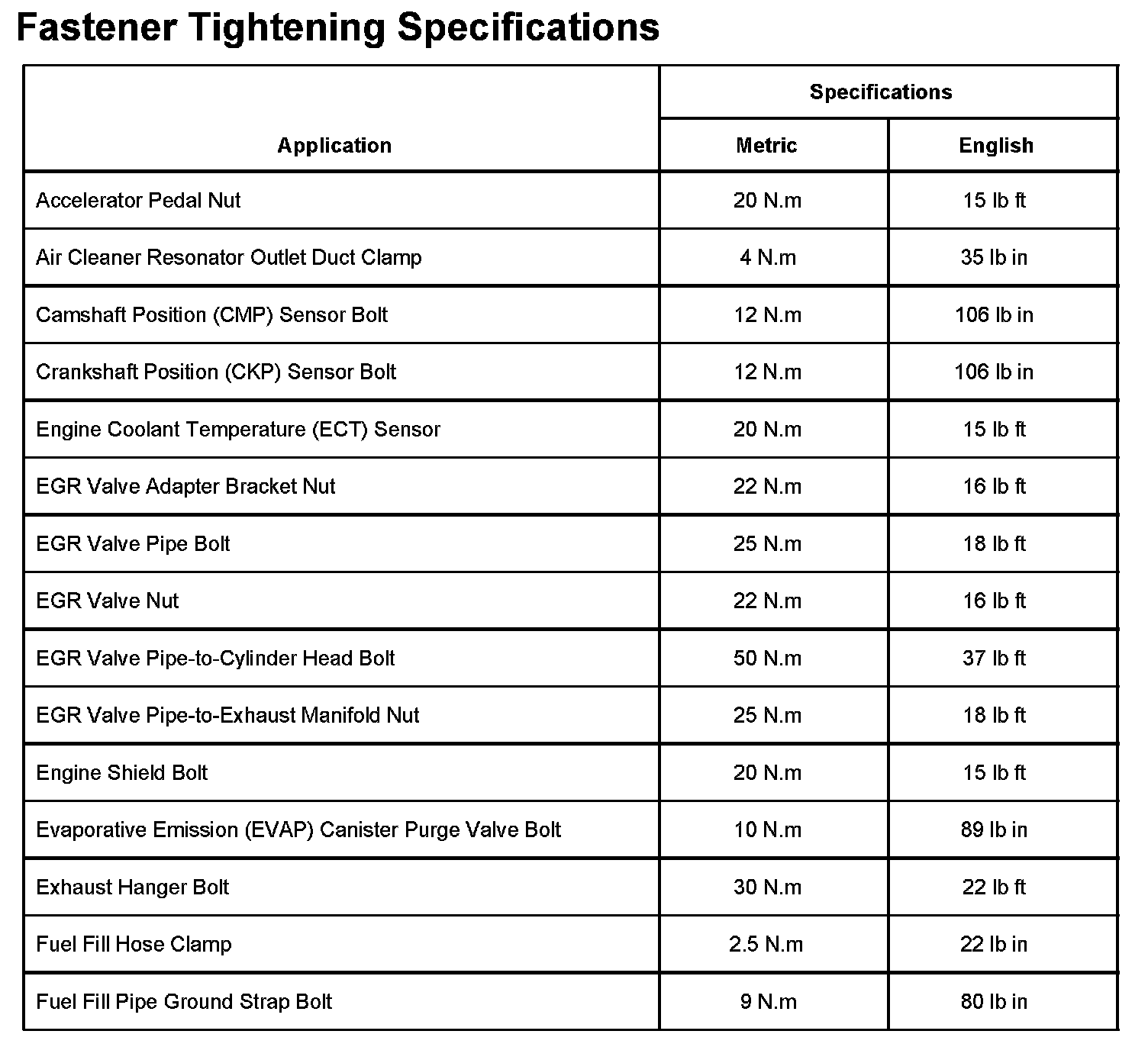 Fastener Tightening Specifications Part 1: