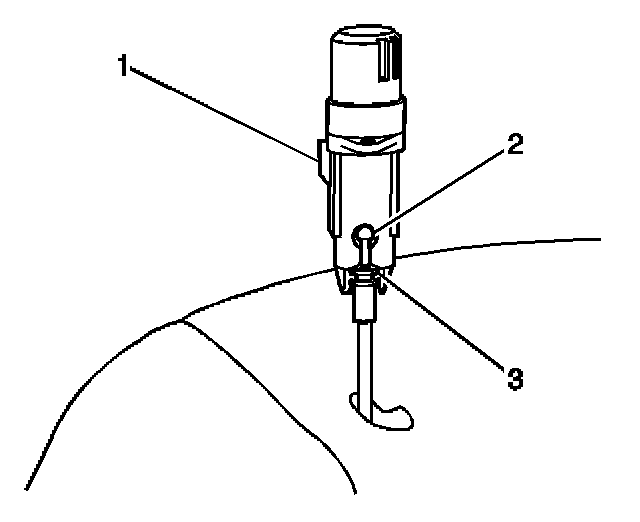 2. Install the cable conduit (3) to the retainer on the actuator (1). Press the cable conduit (3) into retainer on the actuator (1) until fully engaged.