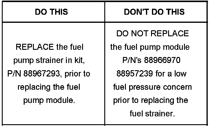 Follow the service procedure below to test fuel pressure and replace the fuel strainer with a 200 micron strainer.