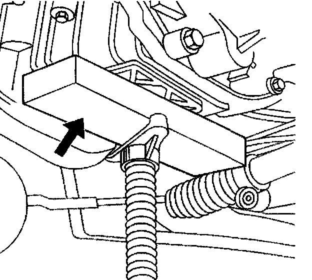Important: In order to avoid oil pan damage and possible engine failure, insert a block of wood that spans the width of the oil pan bottom between the oil pan and the jack support.