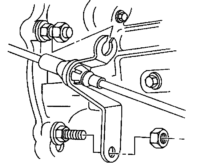 4. Remove the nuts retaining the transmission shift control cable bracket to the transmission.