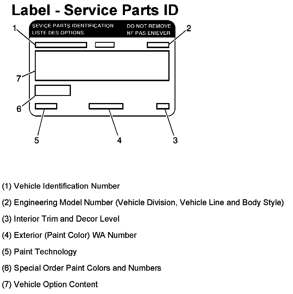 The service parts identification label is used to identify the original equipment options built into the specific vehicle being serviced. The option content of a vehicle is very important information to properly service the vehicle.
