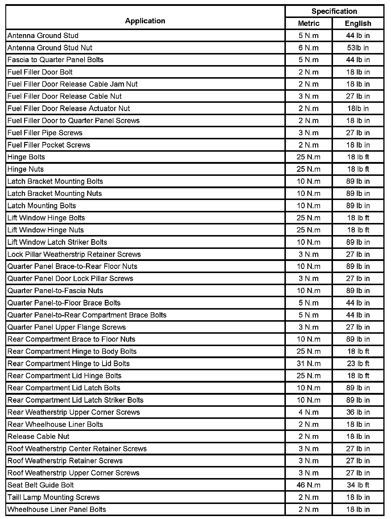 Fastener Tightening Specifications