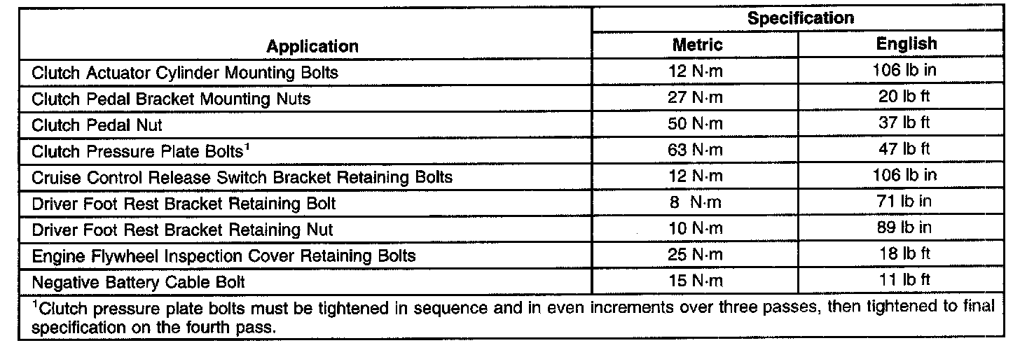 Fastener Tightening Specifications: