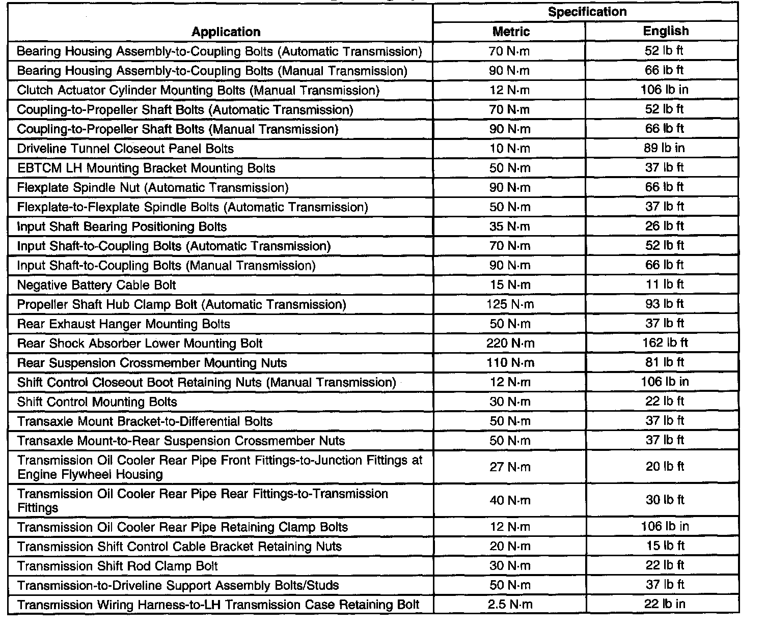 Fastener Tightening Specifications