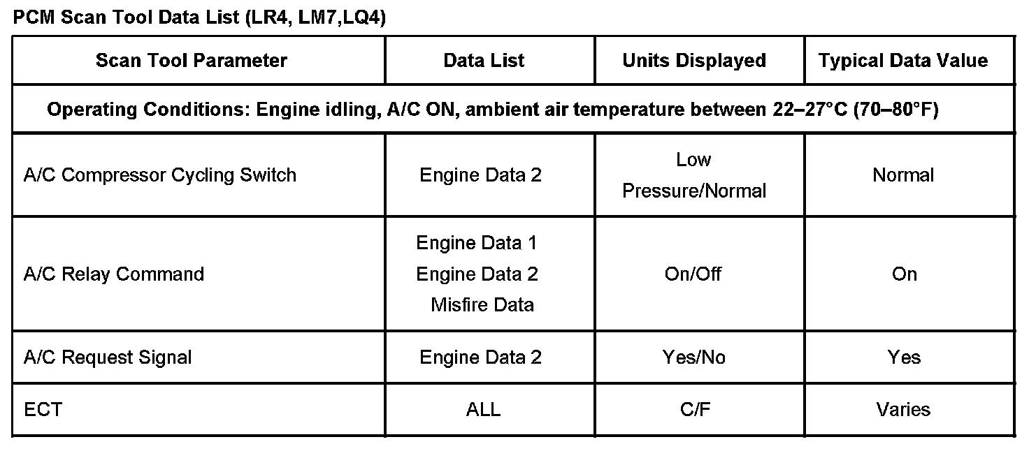 Scan Tool Data List - Powertrain Control Module (PCM)
