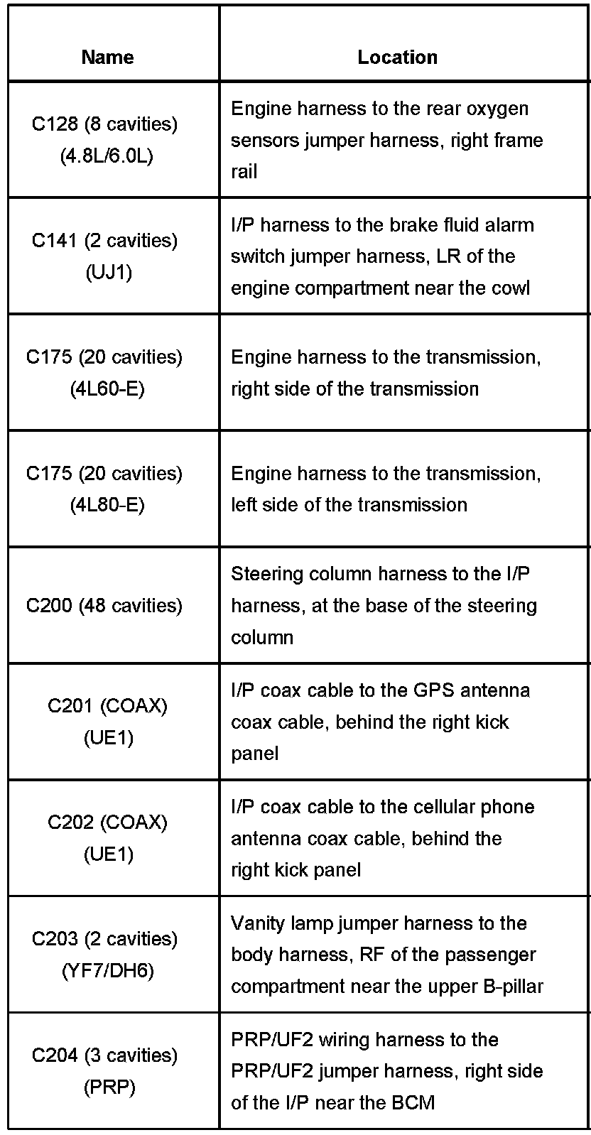 Connector Locations