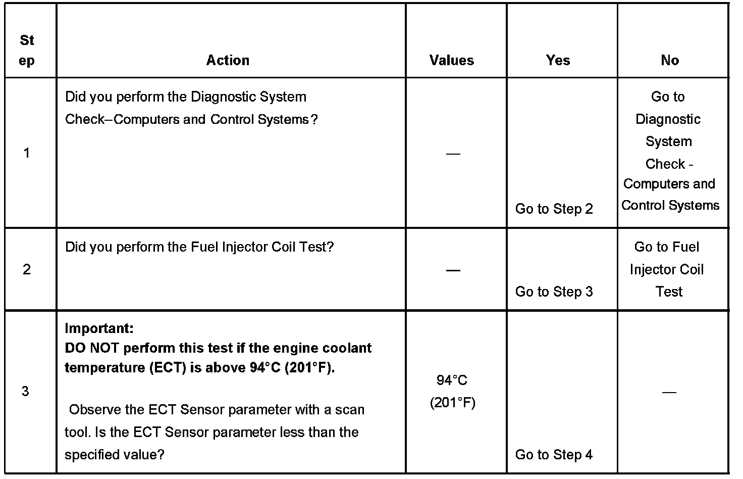 3. The engine coolant temperature (ECT) must be below the operating temperature in order to avoid irregular fuel pressure readings due to hot soak fuel boiling.