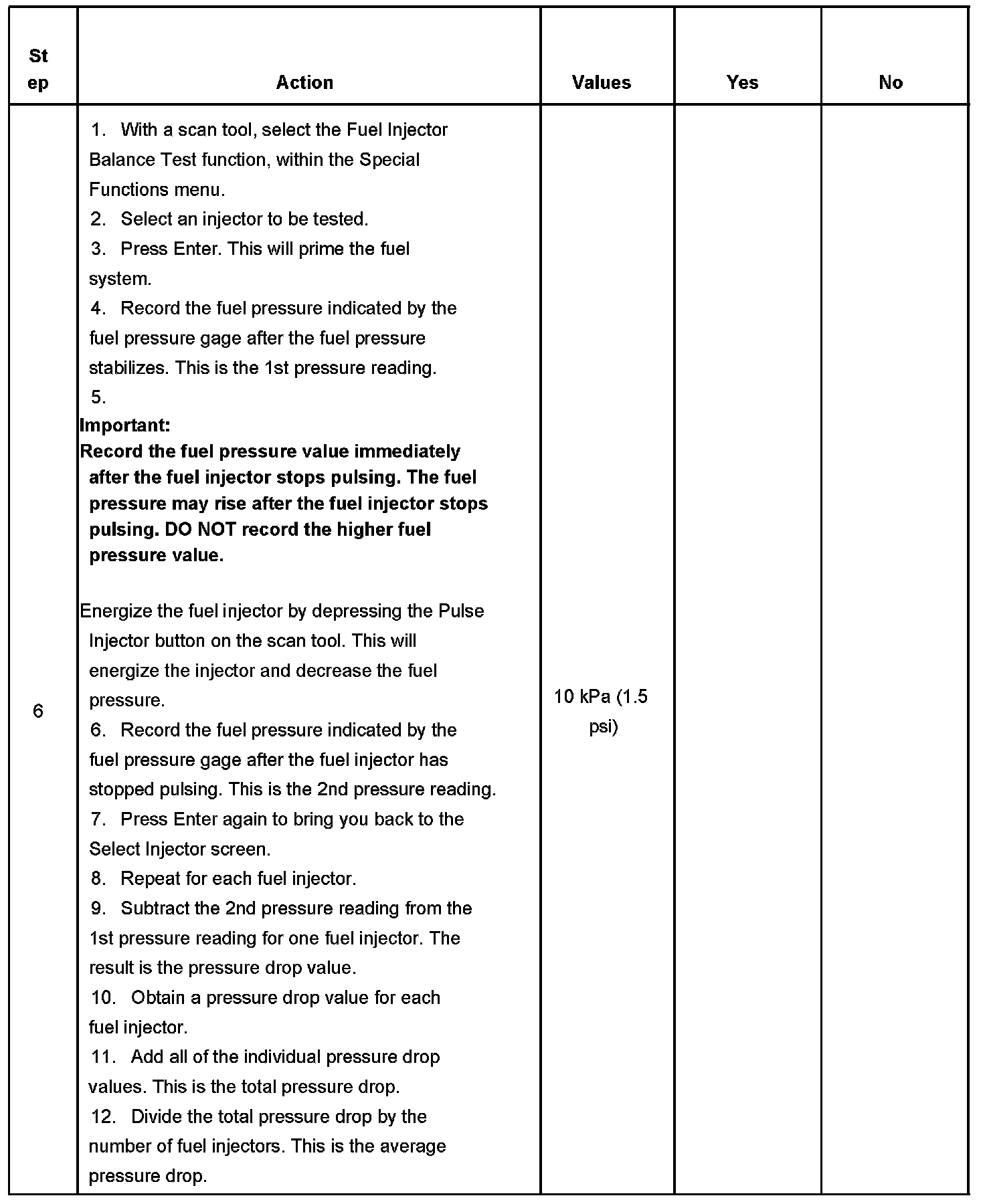 SYSTEM DESCRIPTIONThe scan tool is first used to energize the fuel pump relay. The scan tool is then used to pulse each injector for a precise amount of time allowing a measured amount of fuel into the manifold. This causes a drop in system fuel pressure that can be recorded and used to compare each injector.