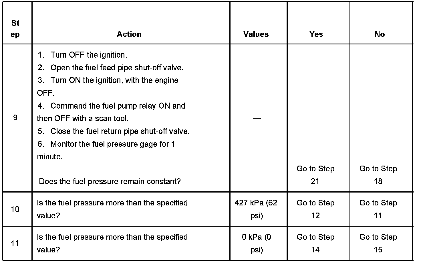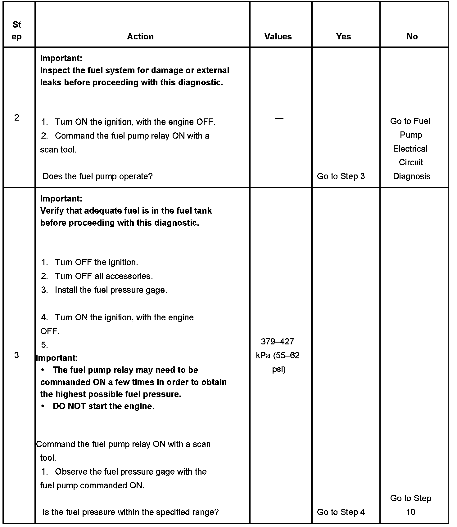 The control module enables the fuel pump relay when the ignition switch is turned ON. The control module will disable the fuel pump relay within two seconds unless the control module detects ignition reference pulses. The control module continues to enable the fuel pump relay as long as ignition reference pulses are detected. The control module disables the fuel pump relay within two seconds if ignition reference pulses cease to be detected and the ignition remains ON.