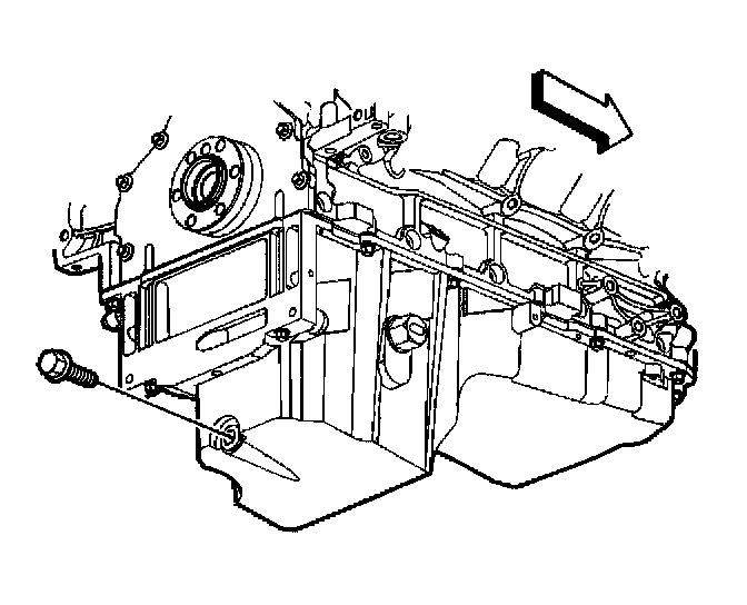 Important: In order to completely drain the oil from the oil pan internal baffling, the bottom of the oil pan must be level during the oil drain procedure.