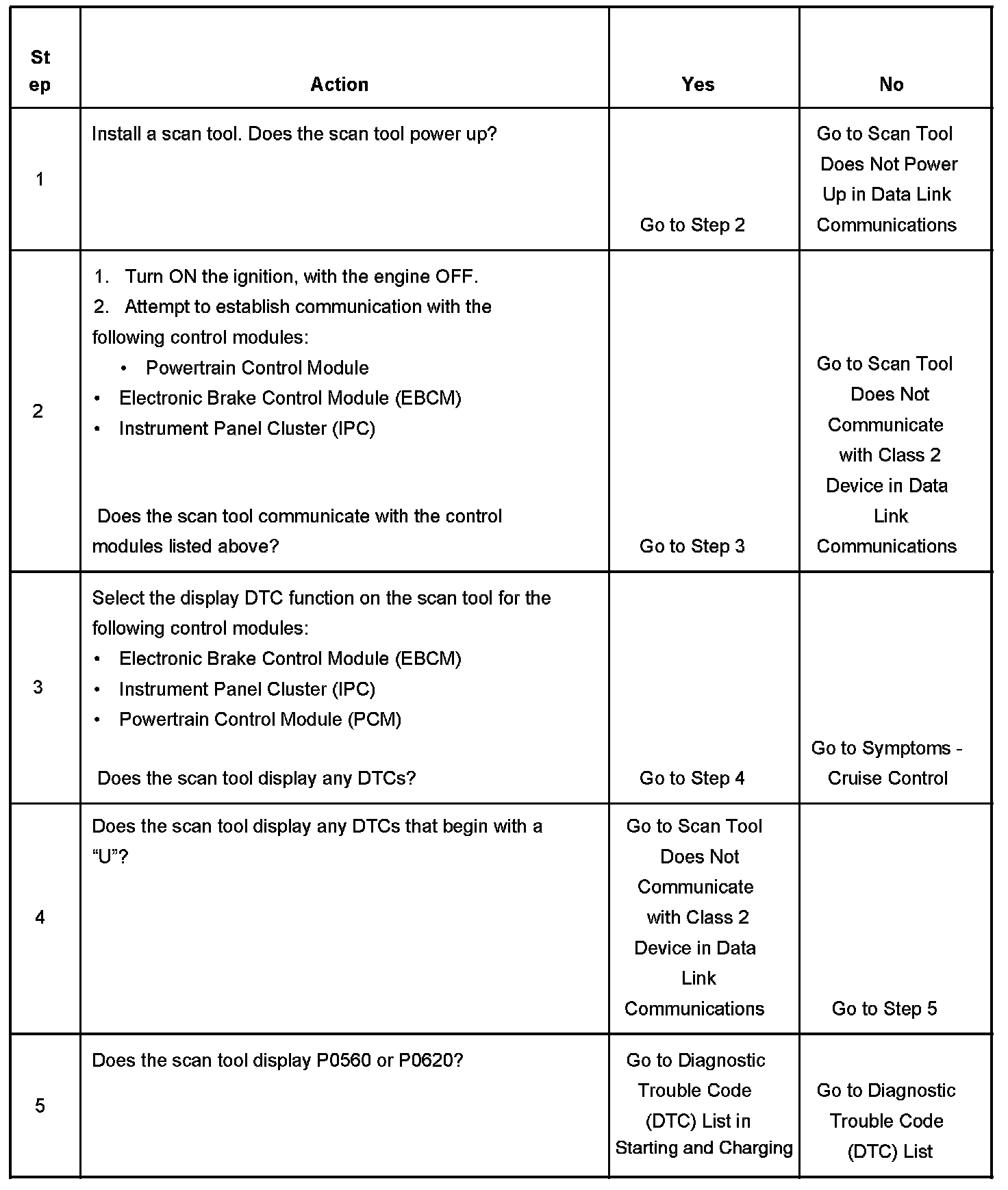 2. Lack of communication may be due to a partial malfunction of the class 2 serial data circuit or due to a total malfunction of the class 2 serial data circuit. The specified procedure will determine the particular condition.