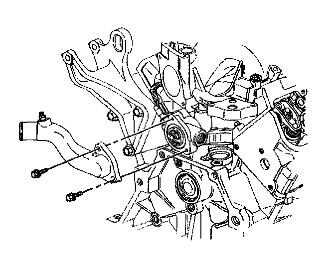 13. Remove the thermostat bypass hose from the thermostat bypass pipe and the lower intake manifold pipe.