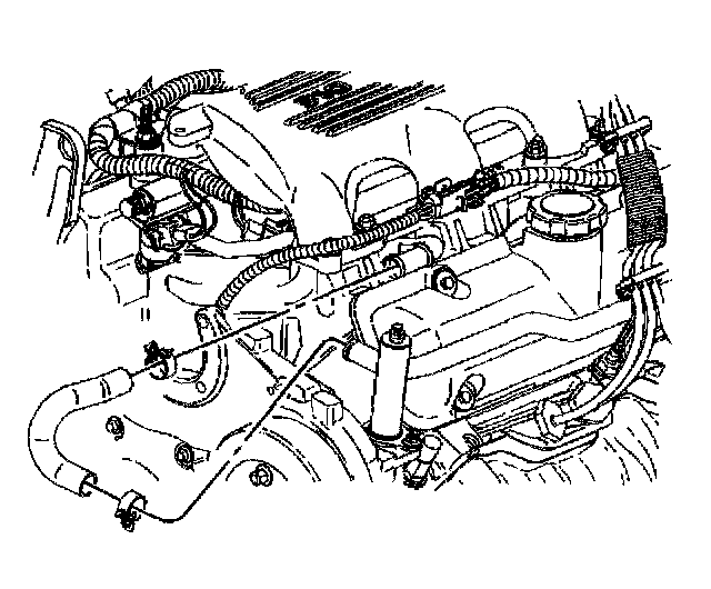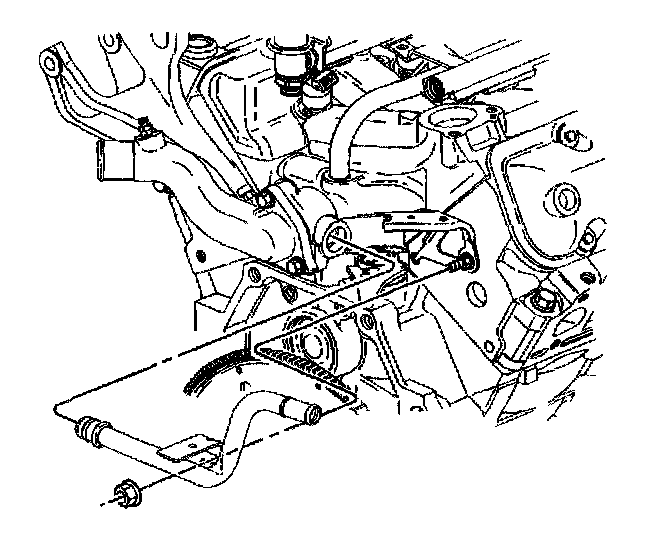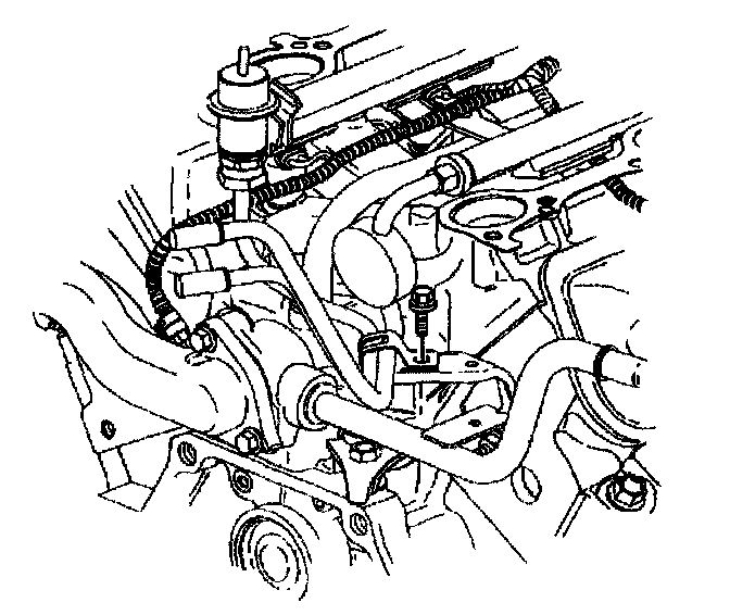 11. Remove the heater inlet pipe with the heater hose from the lower intake manifold and reposition the pipe.
