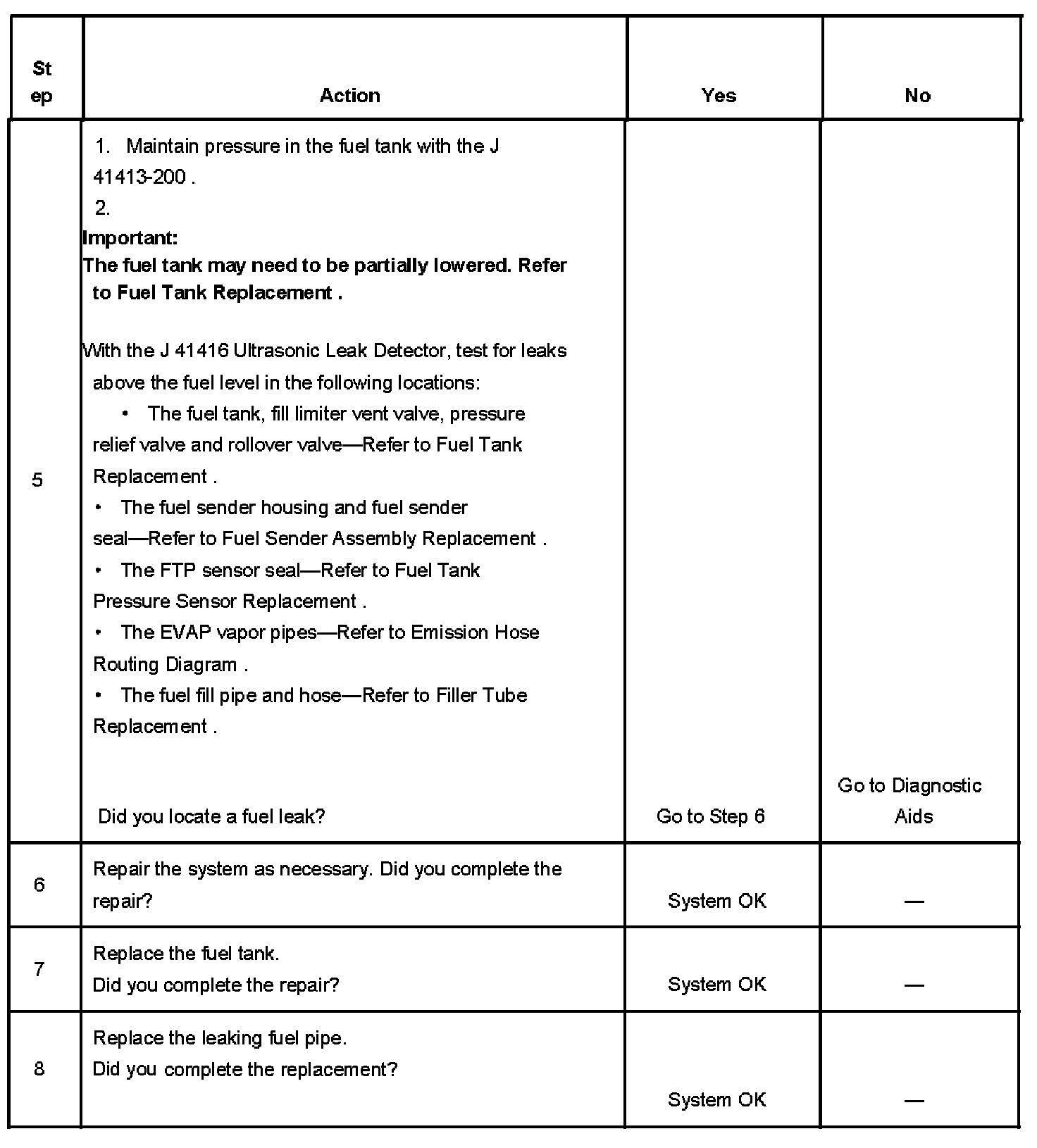 5. This test locates fuel vapors escaping above the fuel level in the fuel tank.