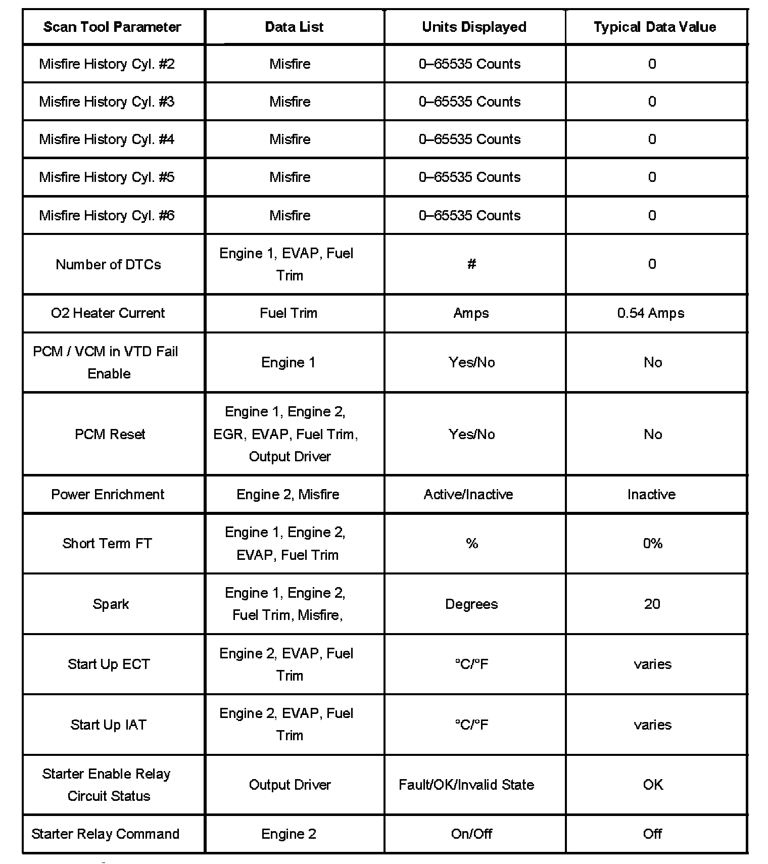 - Misfire Data-Contains information specific to the misfire diagnostics and parameters required to verify proper operation with regard to misfire.