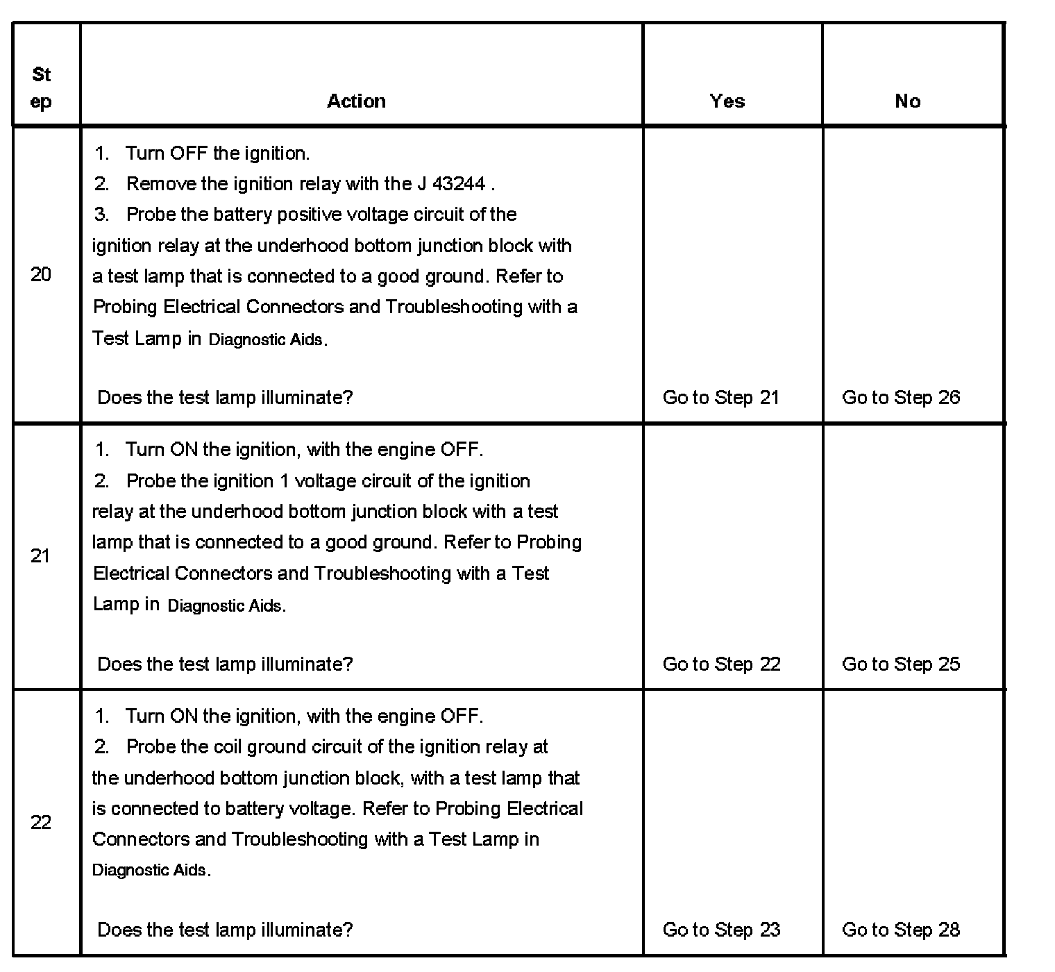 The ignition relay table assumes that the vehicle battery is fully charged.