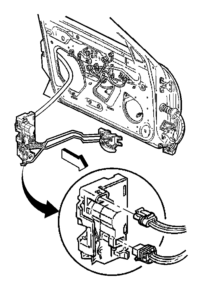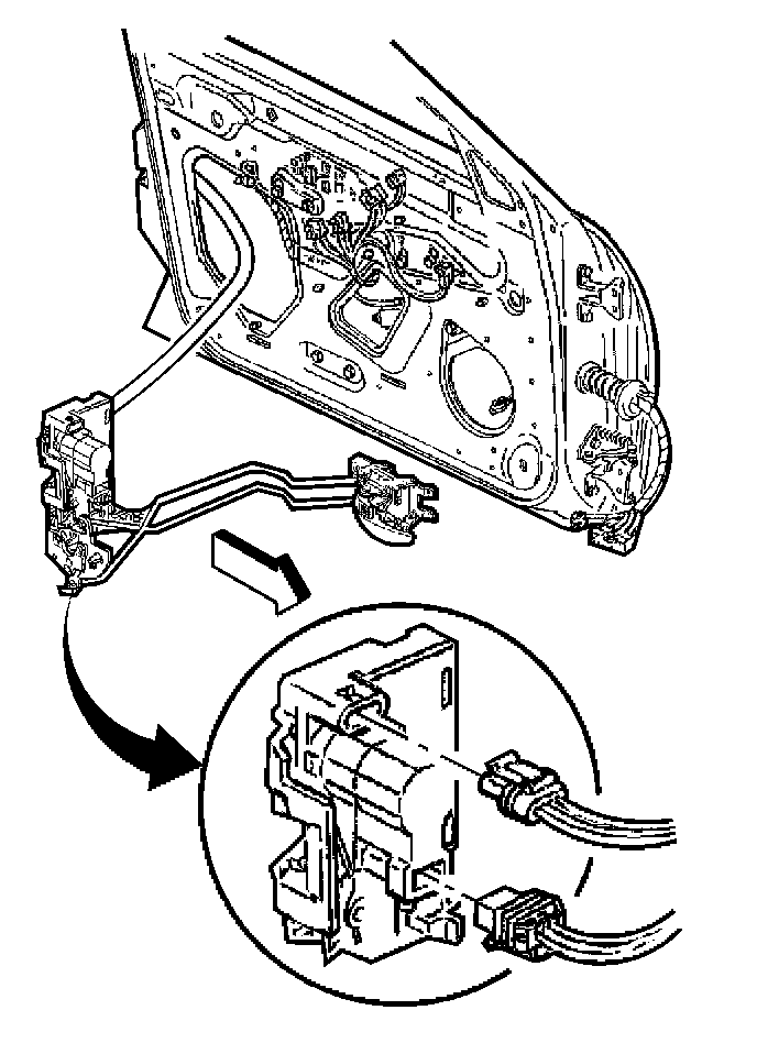 9. Remove the front door inside handle rods from the lock.