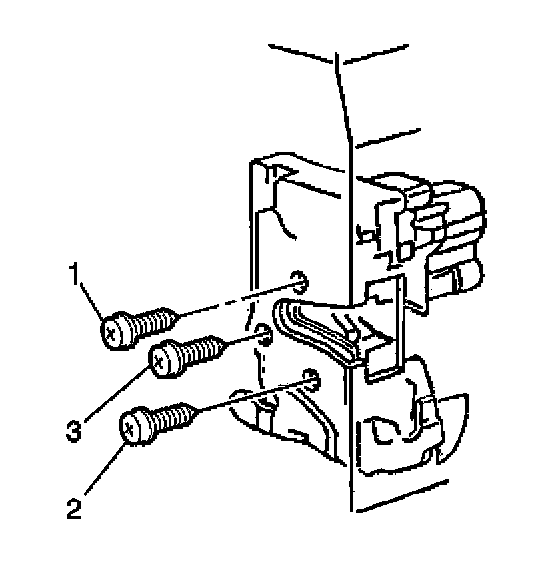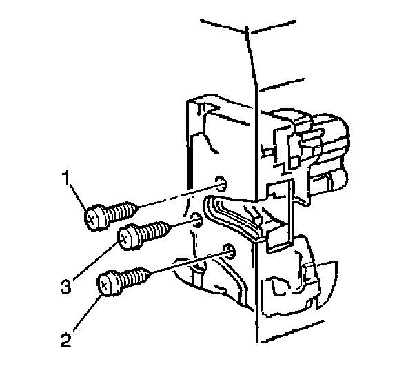 4. Install the front door lock screws in the proper fastener tightening sequence: top (1), bottom (2), middle (3).