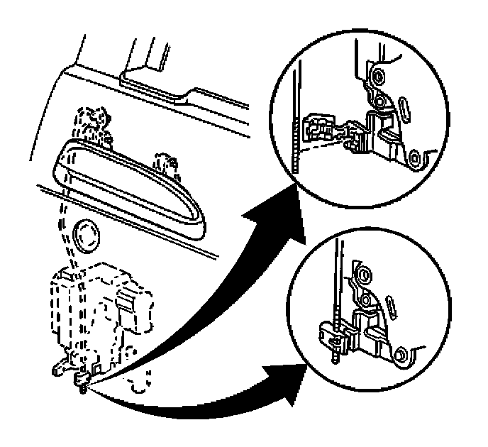 5.1. Position the front door outside door handle rod in the clip to eliminate any free play in the front door outside door handle.