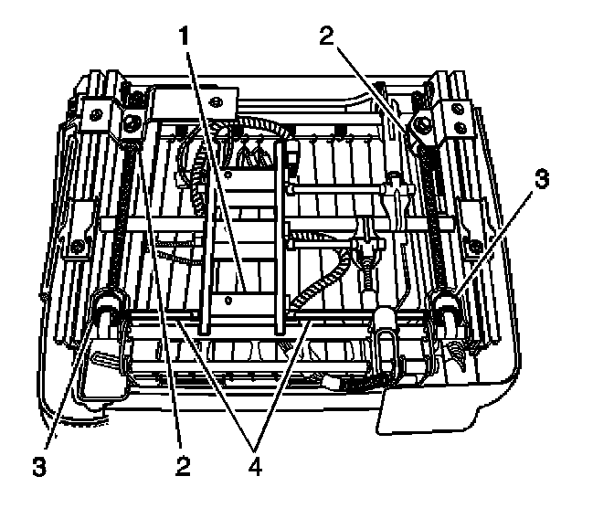 6. Tip the seat rearward to expose the horizontal drive cables (4).