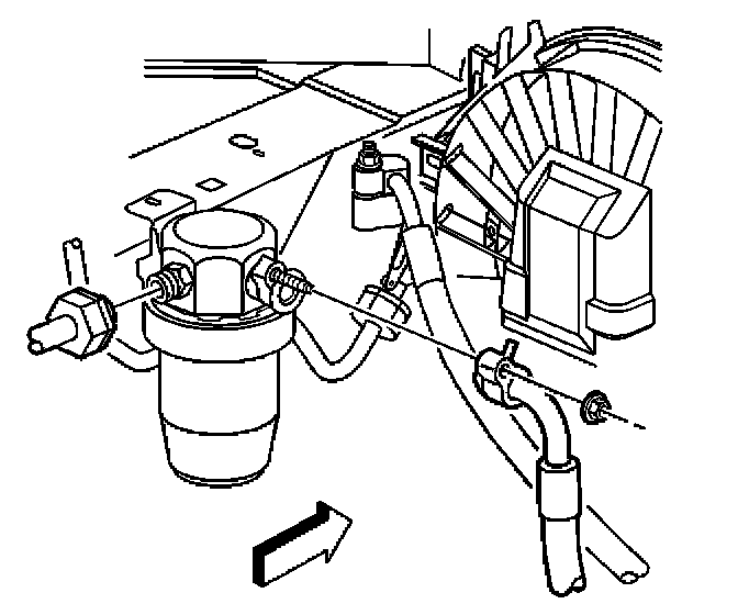 5. Loosen the A/C compressor hose nut from the accumulator.