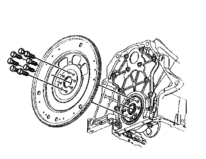 4. Remove 7 of the 8 engine flywheel bolts, leaving 1 bolt at the top of the crankshaft rotation.