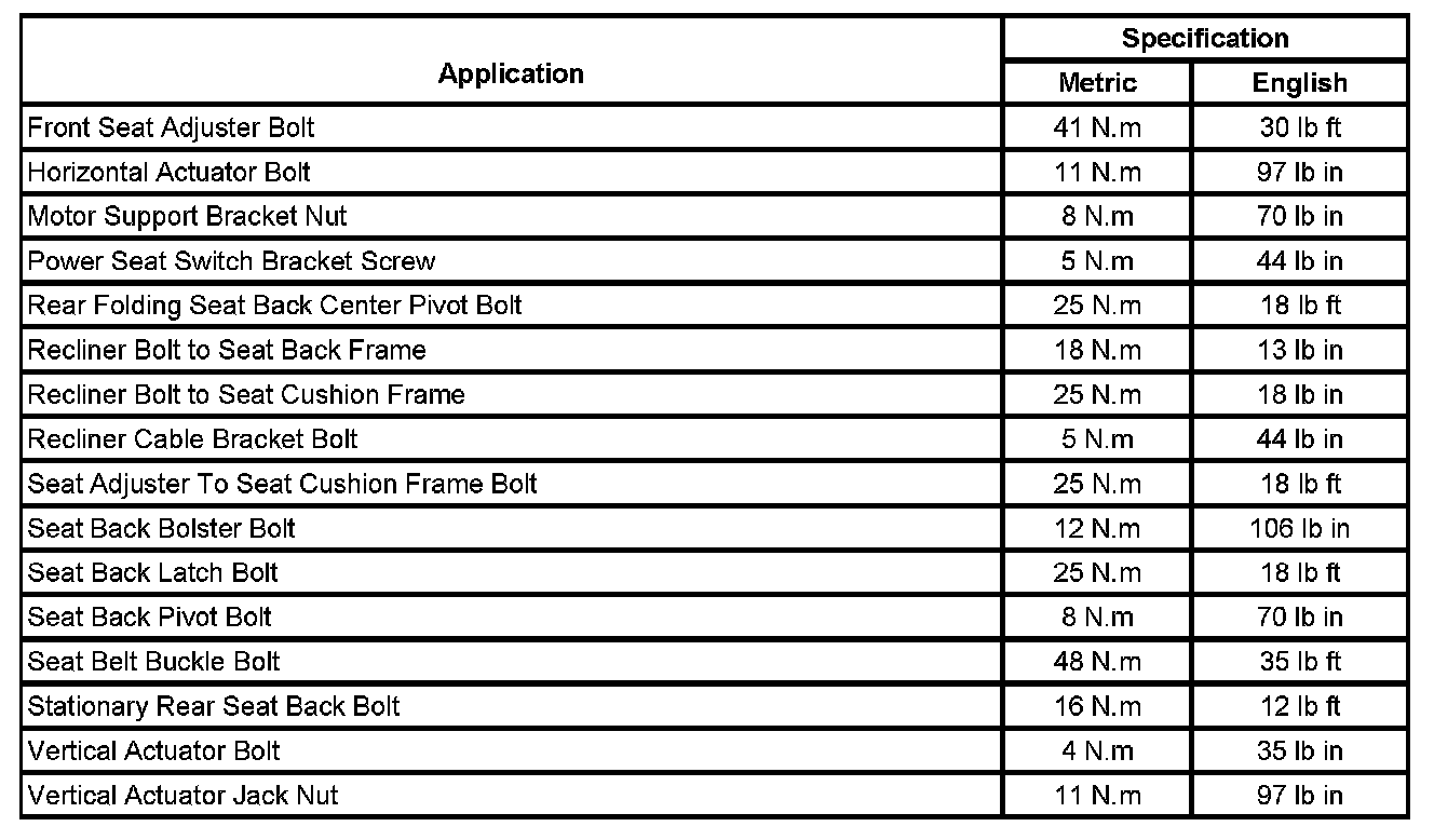 Seats: Specifications