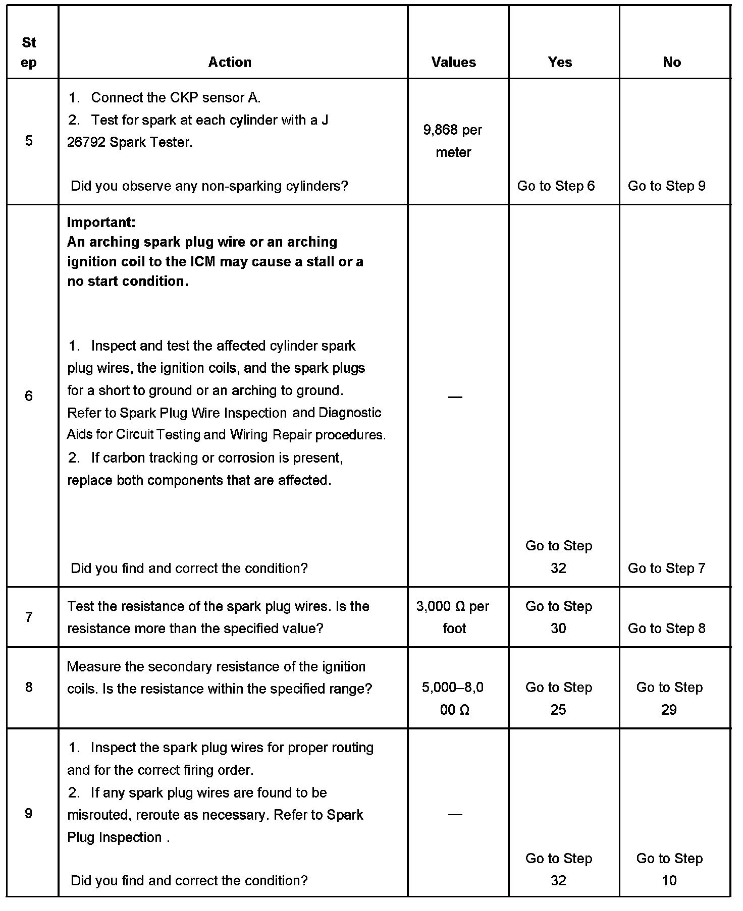 - An arcing spark plug wire or an arcing ignition coil to the ICM may cause a stall, misfire or a no start condition.