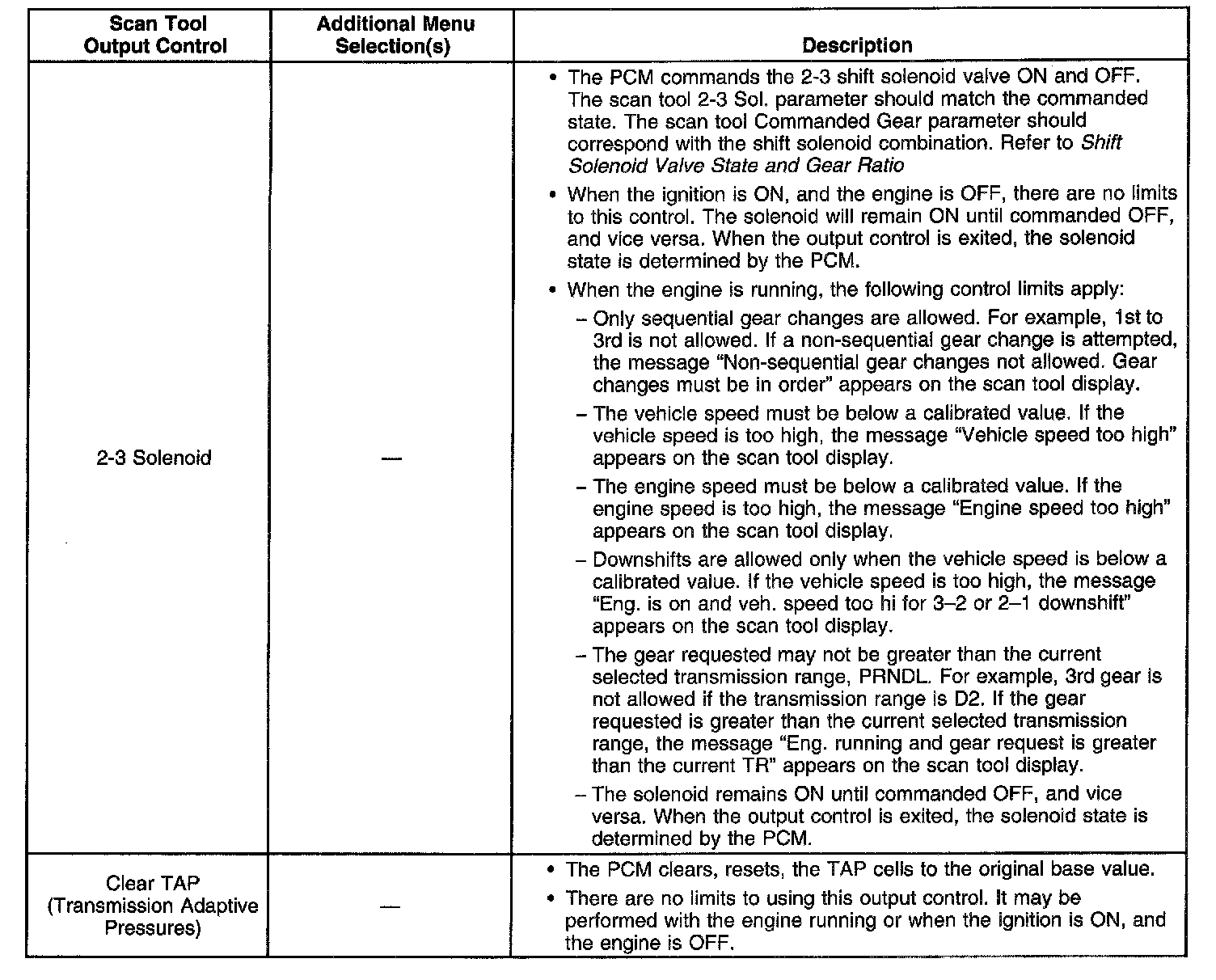 Scan Tool Output Controls