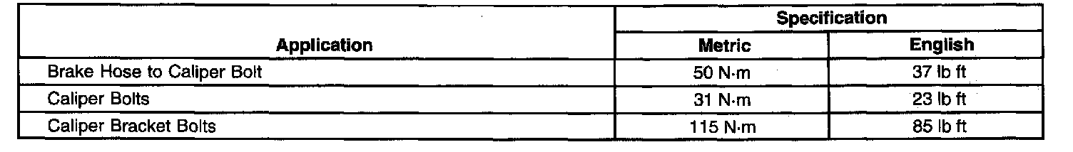 Disc Brake Fastener Tightening Specifications: