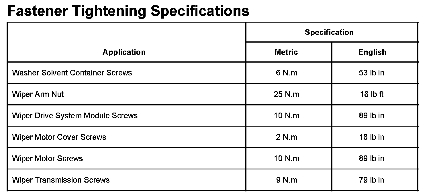 Wiper and Washer Systems: Specifications