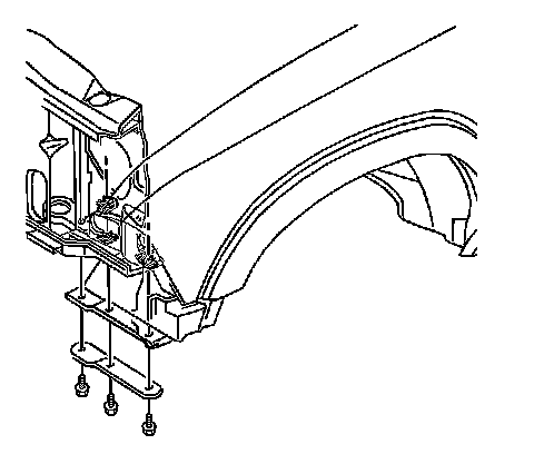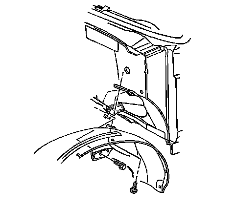 5. Install the bolts that retain the wheel house panel to the radiator support.