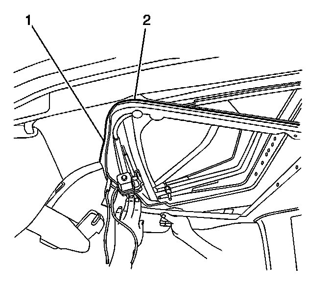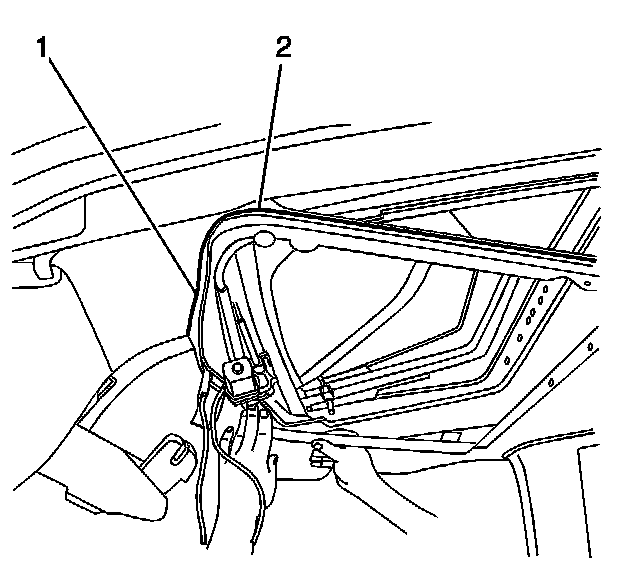 5. Carefully position the lower frame assembly (2) to the headliner and upper frame assembly.