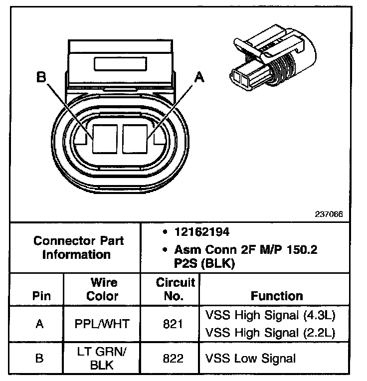 Vehicle Speed Sensor Assembly Connector, Wiring Harness Side: