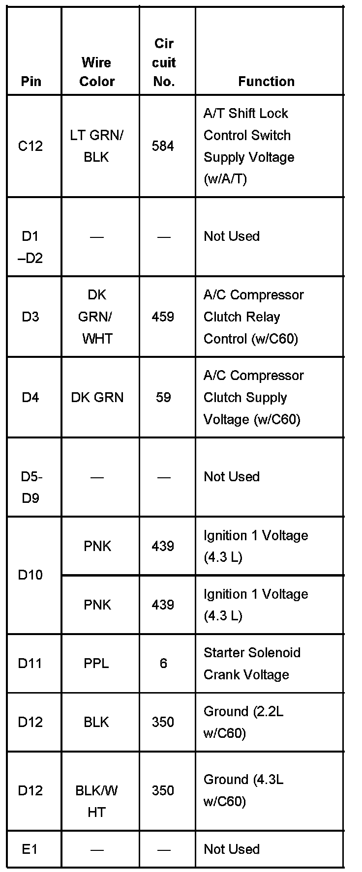 Fuse Block - Underhood Connector C2 Part 4: