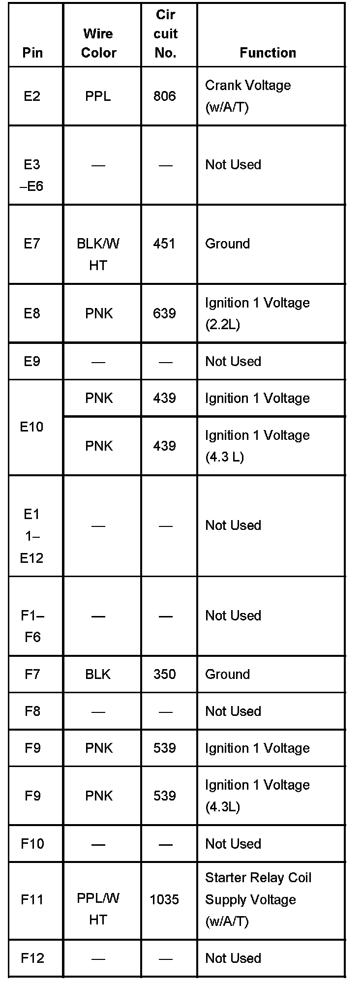 S10/T10 P/U 2WD L4-2.2L VIN 4