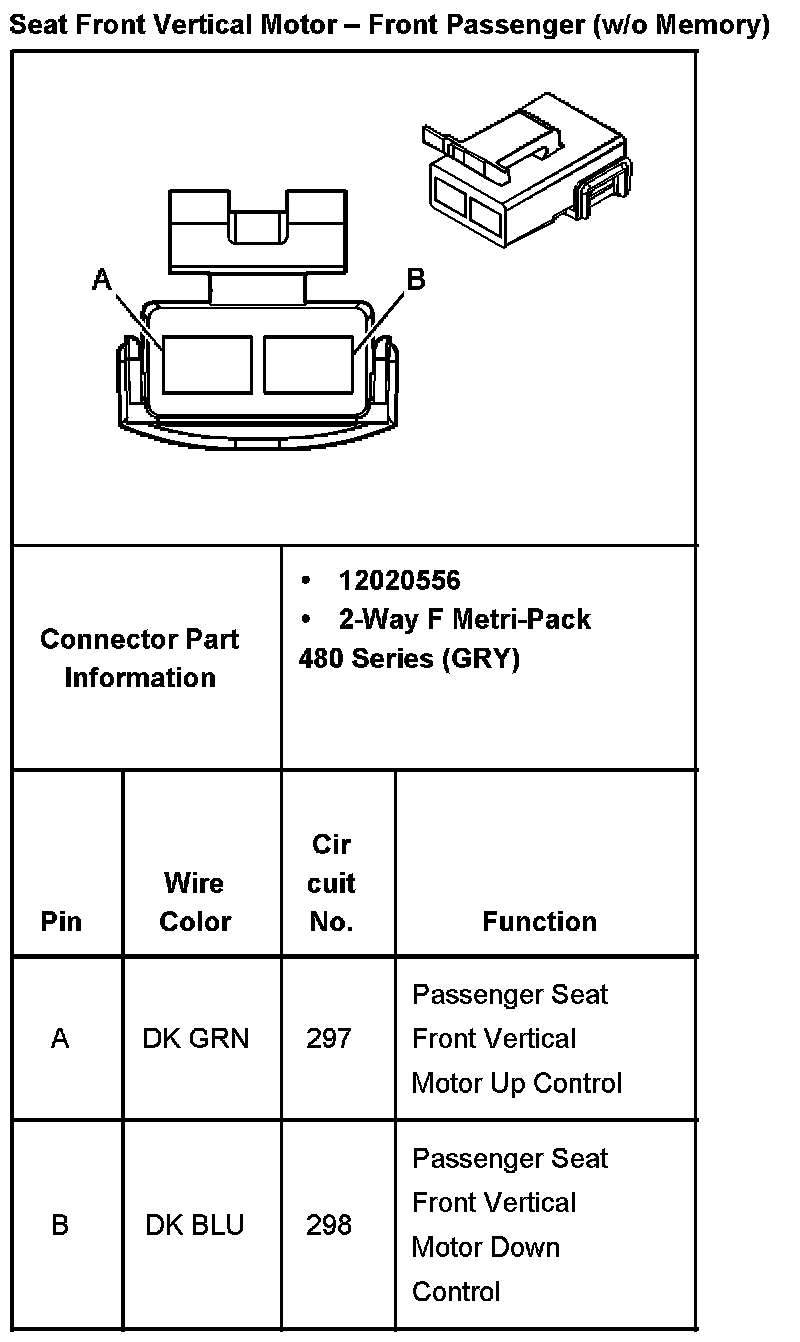 Seat Front Vertical Motor - Front Passenger (w/o Memory):