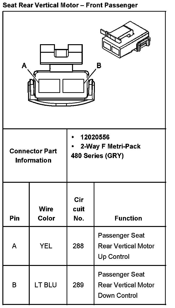 Seat Rear Vertical Motor - Front Passenger: