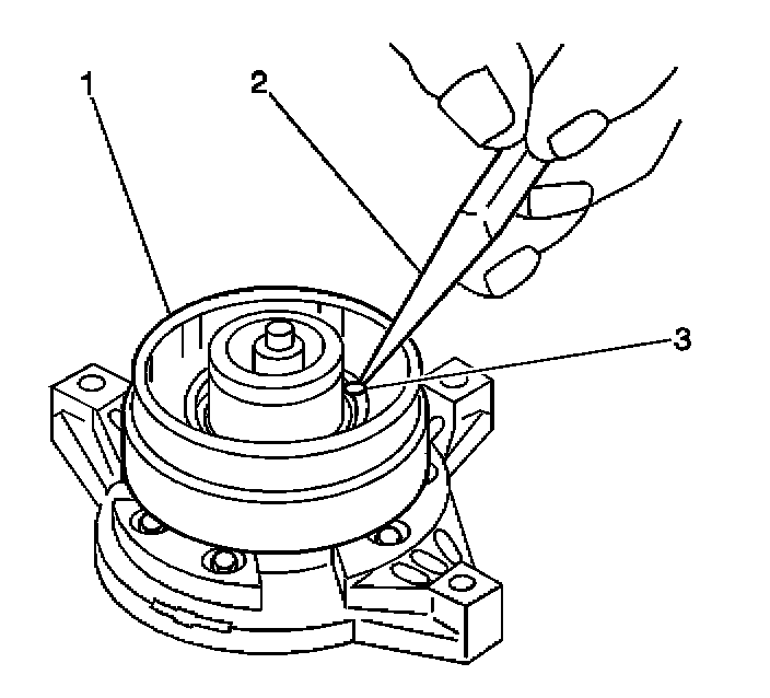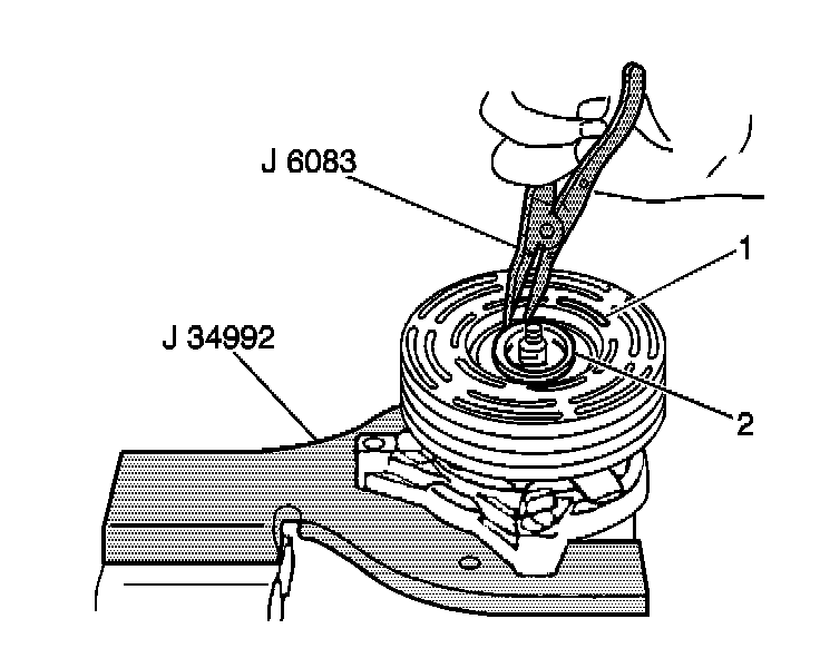 10. With the compressor mounted to the J 34992, position the pulley rotor (1) and bearing assembly on the front head.