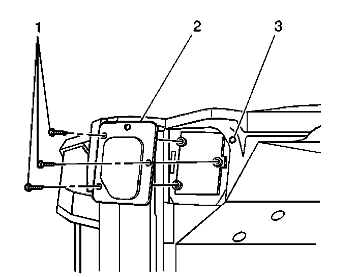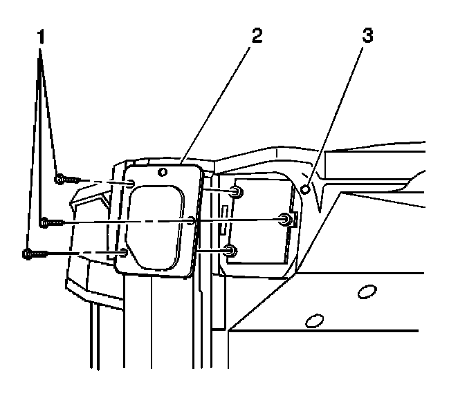 12. On the Utility only, while an assistant inside the vehicle pulls the bottom right corner of the heat/vent module approximately 2.5 mm (1 in) back, remove the 2 heat/vent module mounting studs.