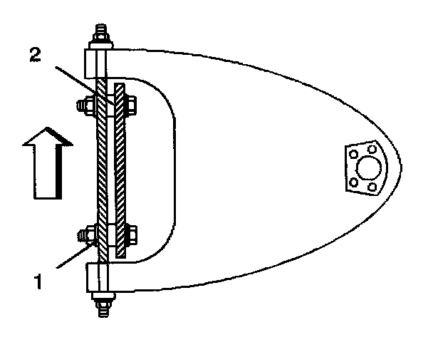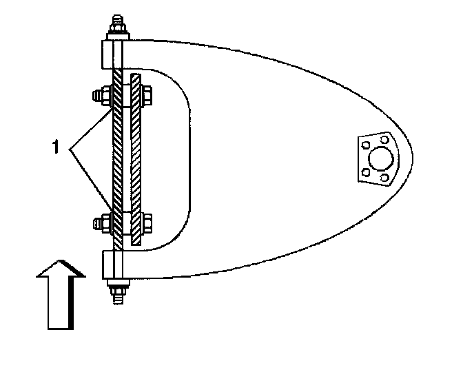 5. A normal shim pack will leave at least two threads of the bolt exposed beyond the nut (1). The difference between the front shim pack and the rear shim pack must not exceed 10 mm (0.40 inch). If you cannot meet these requirements, check for damage to the control arms and to related parts.