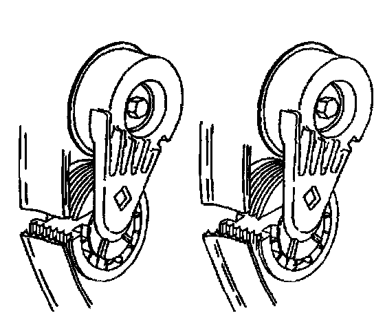 Notice: Allowing the drive belt tensioner to snap into the free position may result in damage to the tensioner.