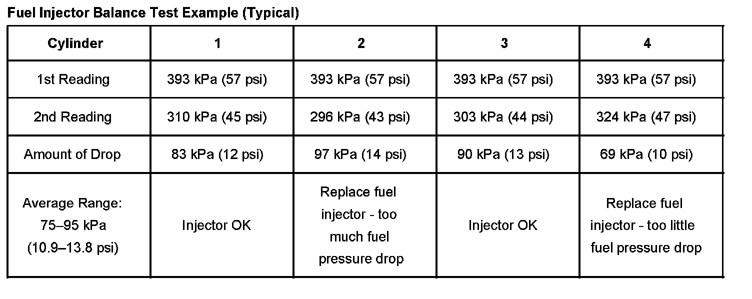 SYSTEM DESCRIPTIONFuel Injector Balance Test Example (Typical):