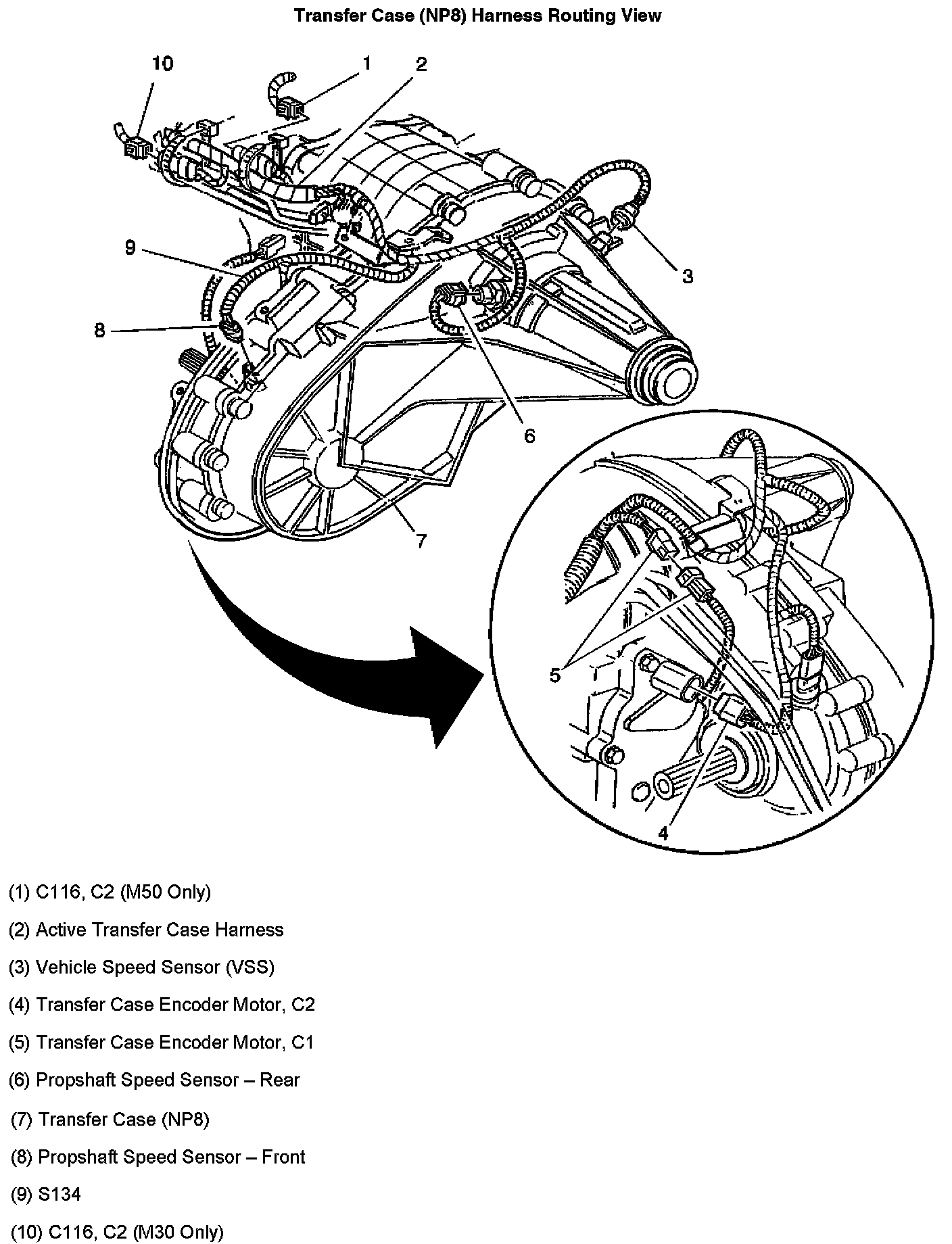 Transfer Case (With RPO Code NP8) Harness Routing View: