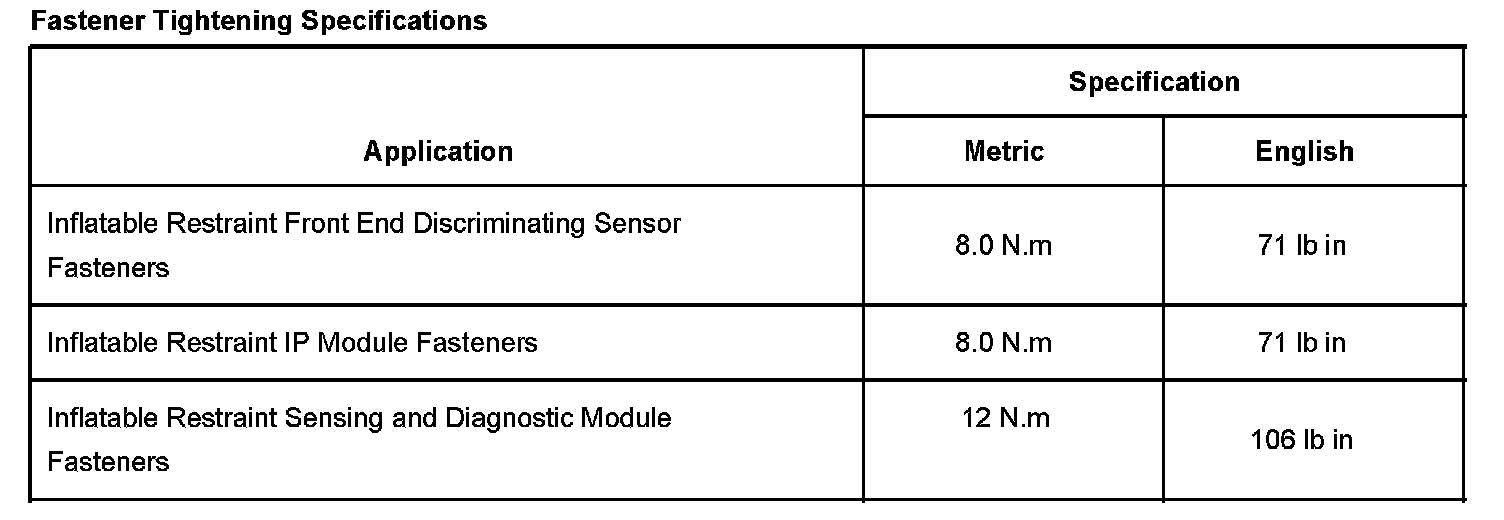 Fastener Tightening Specifications: