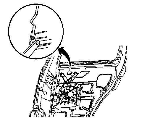 1. Install the window regulator and the motor assembly (power windows only) to the door.